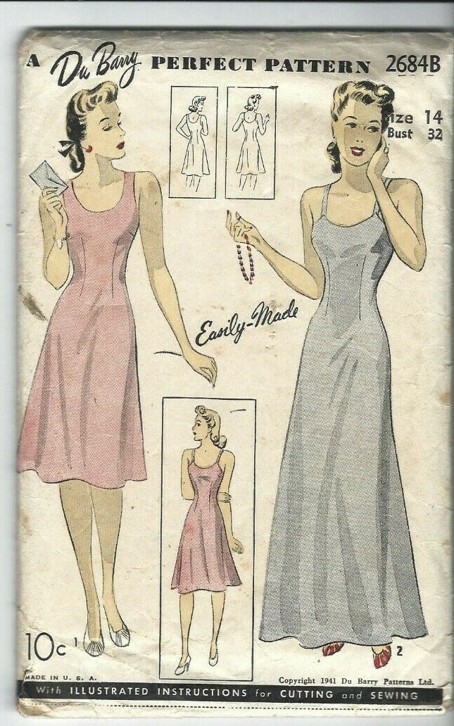 Du Barry Sewing Pattern 2684b Vintage 1941 Slip In 2 Lengths Size 14 32 Bust Ebay